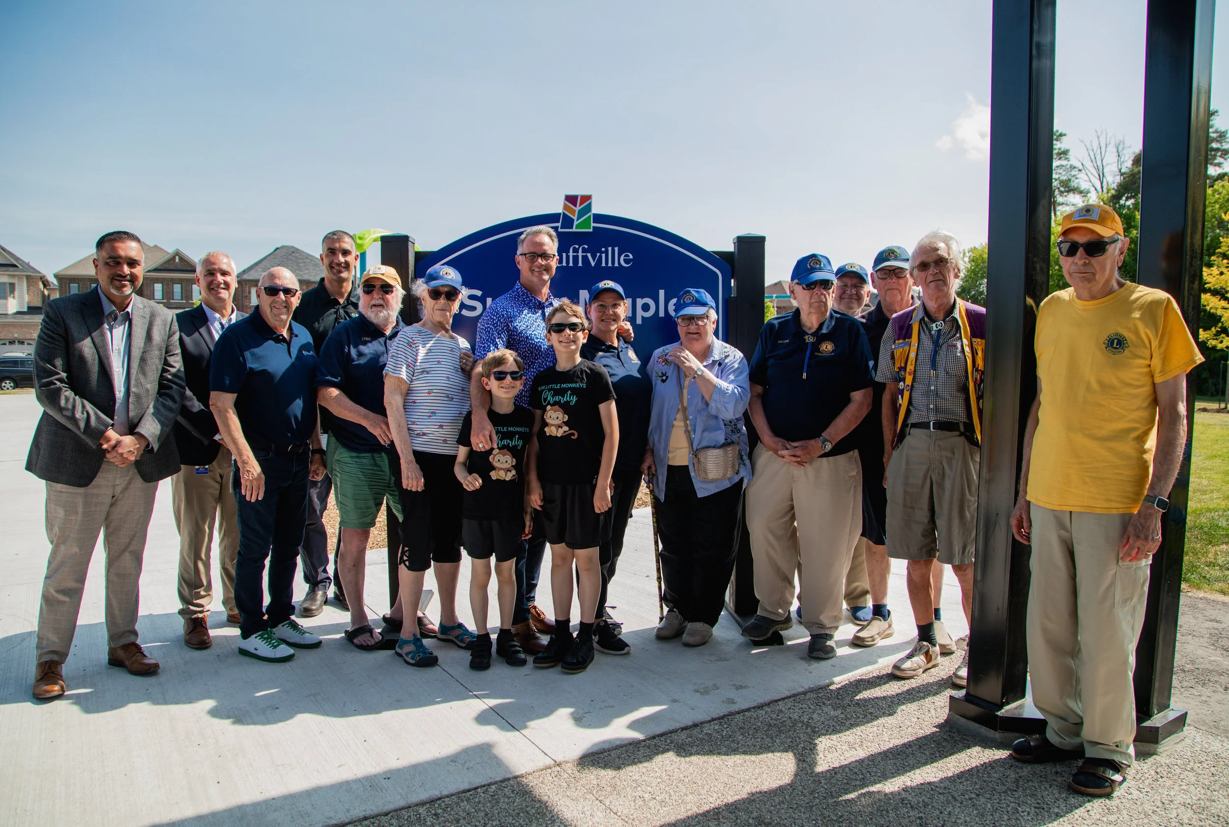 Charity ambassadors with the Stouffville Mayor, Town of Stouffville staff and project team members and the Lion’s Club representatives who also donated an accessibility element to the project